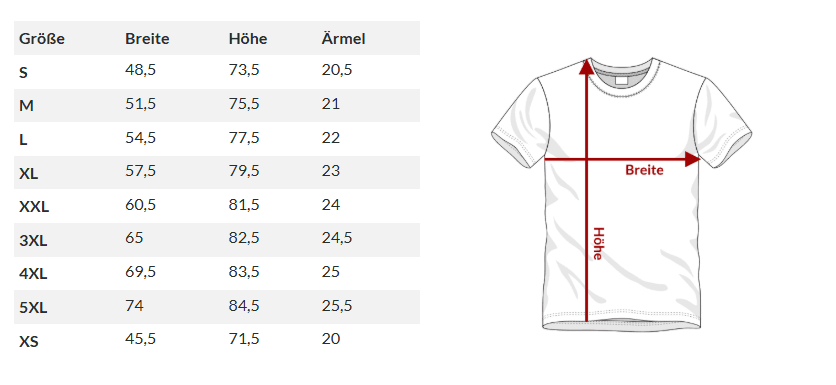 Bitte beachten Sie, dass es sich um unverbindliche Richtwerte handelt. Textilien sind nicht genormt (wie z. B. ein Blatt Papier im DIN A4 Format). Für ungewaschene Textilien gelten daher übliche Toleranzbereiche von ca. +/- 2,5 cm.