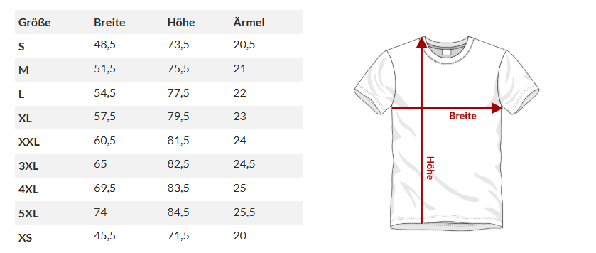 Bitte beachten Sie, dass es sich um unverbindliche Richtwerte handelt. Textilien sind nicht genormt (wie z. B. ein Blatt Papier im DIN A4 Format). Für ungewaschene Textilien gelten daher übliche Toleranzbereiche von ca. +/- 2,5 cm.