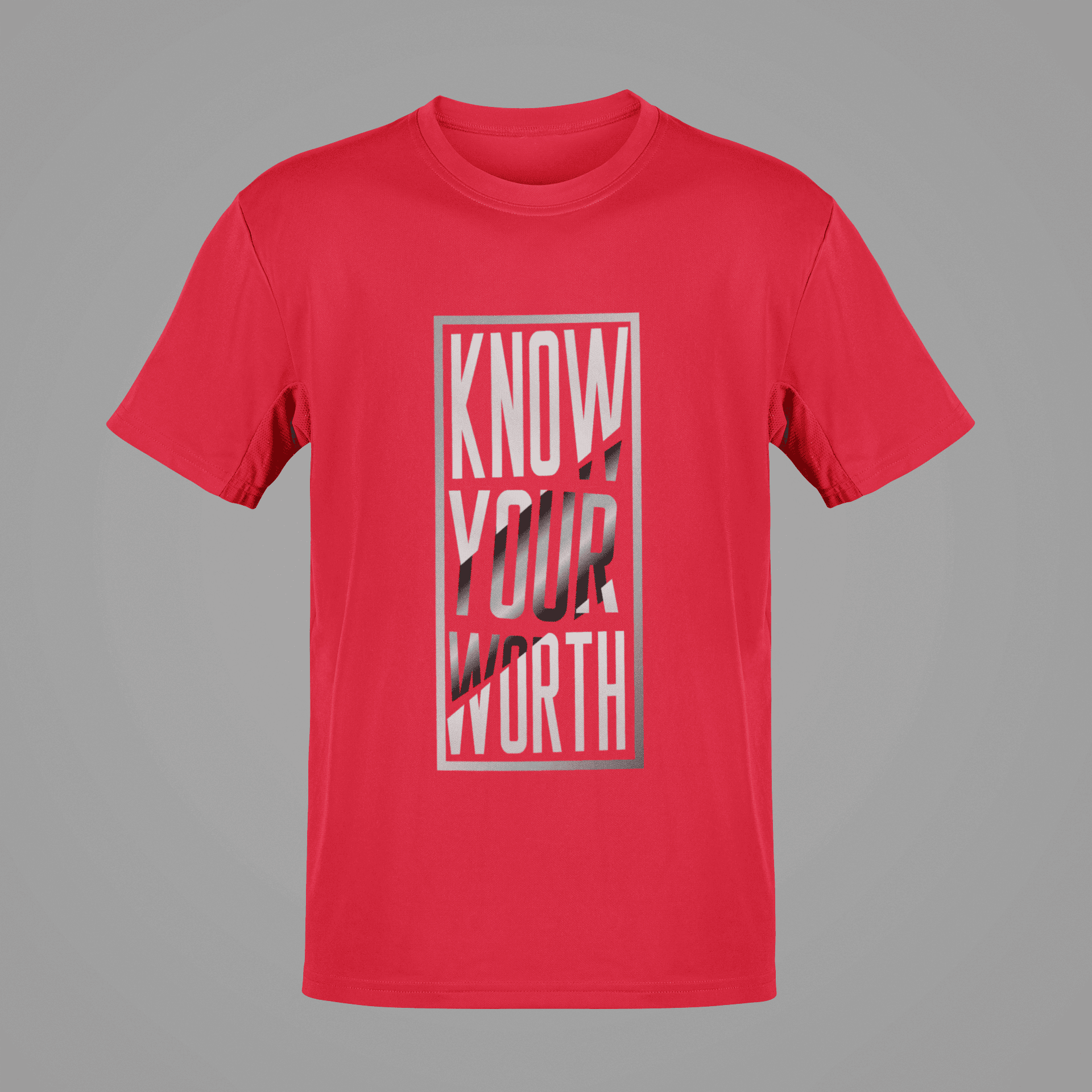 Mit dem klaren, aber kraftvollen Statement „Know your worth“ trägst du eine Botschaft, die Mut macht – dir selbst und denen, die dich sehen. Ob im Alltag, beim Chillen, in der Schule oder im Café: Dieses Shirt spricht für sich.