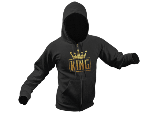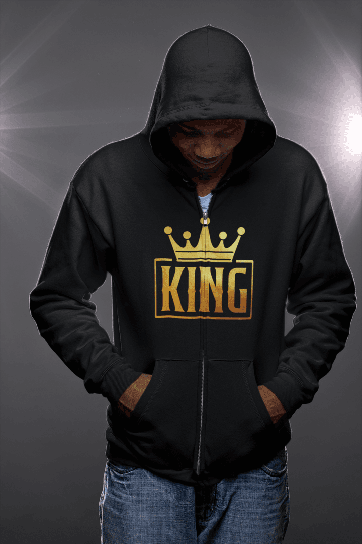 Machen Sie Ihr Outfit zu etwas Besonderem. Wählen Sie Stil, Komfort und das gewisse Etwas. Holen Sie sich den King-Zip-Hoodie noch heute und genießen Sie einen unwiderstehlich königlichen Look!