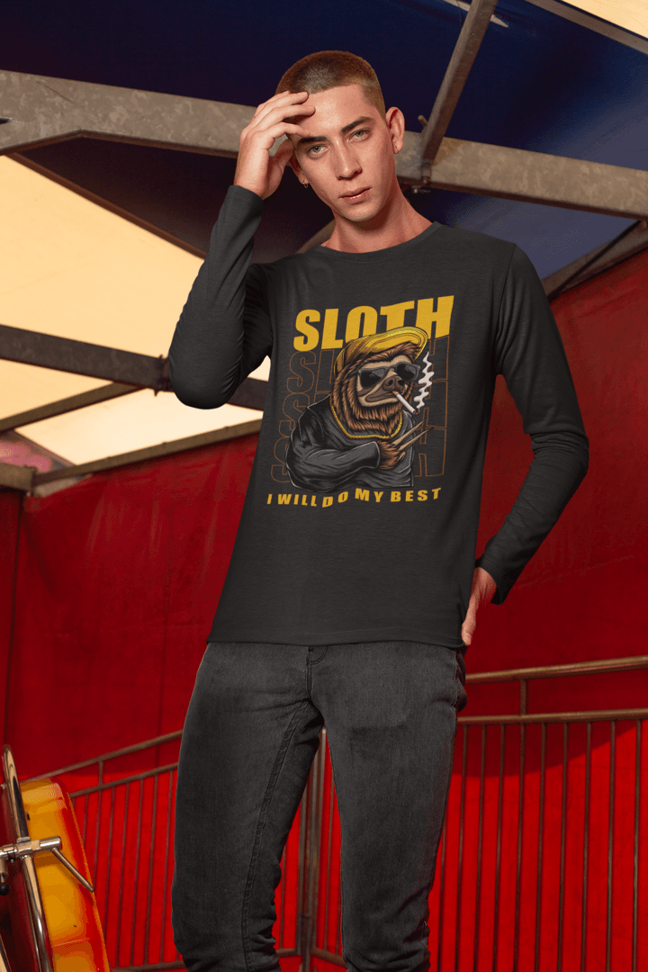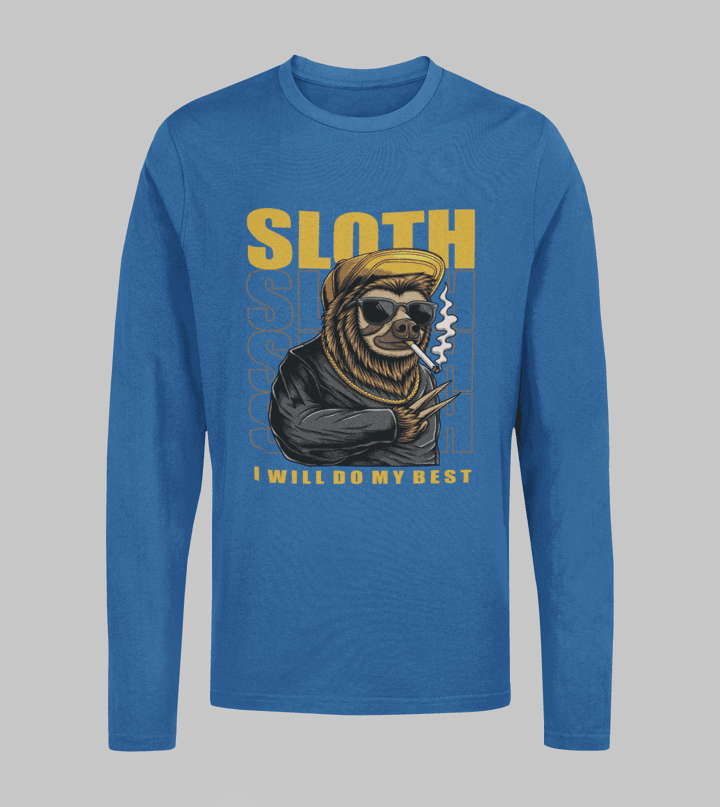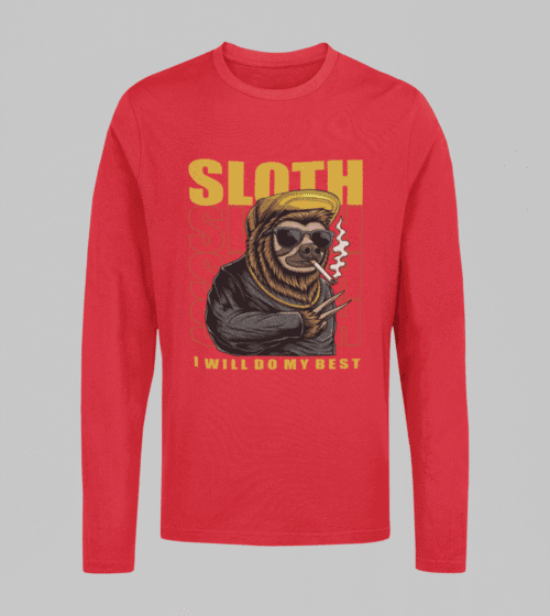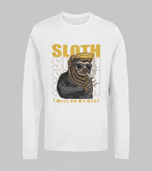 Das Faultier-Design mit der rockigen Schrift “sloth” ist nicht nur beeindruckend, sondern auch vielseitig kombinierbar: Tragen Sie es zur Jeans, Jogginghose oder unter einer Jacke. Darüber hinaus ist das Shirt sehr pflegeleicht und bleibt auch nach häufigem Waschen strahlend und formstabil, sodass Sie lange Freude daran haben. Ein Must-have für jeden Kleiderschrank und ein tolles Geschenk für Faultier-Liebhaber!Langarm