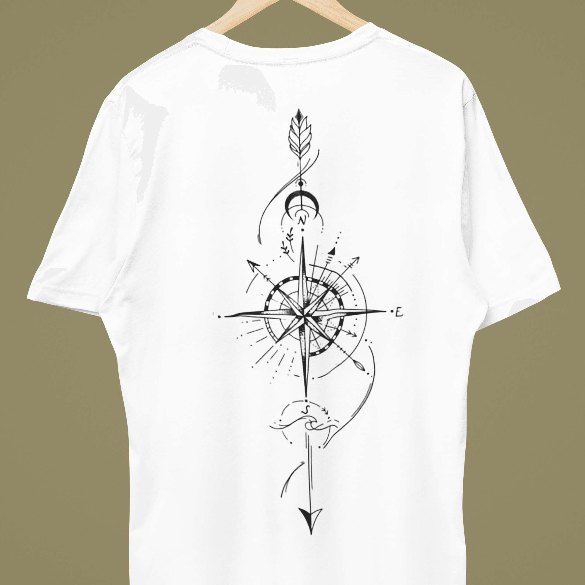 Entdecken Sie das perfekte Statement-Piece für Ihren Alltag: Unser exklusives, hochwertiges T-Shirt in klassischem Weiß überzeugt mit einem detailreichen Kompass-Design auf der Rückseite – ideal für Abenteurer, Reisefans und stilbewusste Trendsetter. Der weiche Baumwollstoff bietet angenehmen Tragekomfort, während der moderne Schnitt für eine optimale Passform sorgt. Erhältlich in den Größen S bis XL und leicht kombinierbar zu jedem Outfit, ist dieses Shirt ein Must-have in jeder Garderobe. Machen Sie sich bereit für Ihren nächsten Trip – egal ob in der Stadt oder in der Natur.