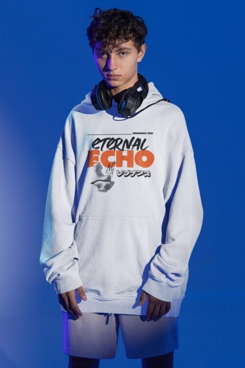 Entdecken Sie den stylischen Eternal Echo Oversized Kapuzenpullover in klassischen Farben – mit einem farbenfrohen Schriftzug und faszinierenden japanischen Zeichen, die garantiert alle Blicke auf sich ziehen. Aus besonders weichem und hochwertigem Material gefertigt, sorgt dieser Hoodie für erstklassigen Tragekomfort bei jedem Anlass. Ob im Alltag, beim Sport oder in der Freizeit – der Eternal Echo ist das perfekte Must-have für trendbewusste Fashion-Liebhaber. Erhältlich in verschiedenen Größen, damit jeder seine perfekte Passform findet.